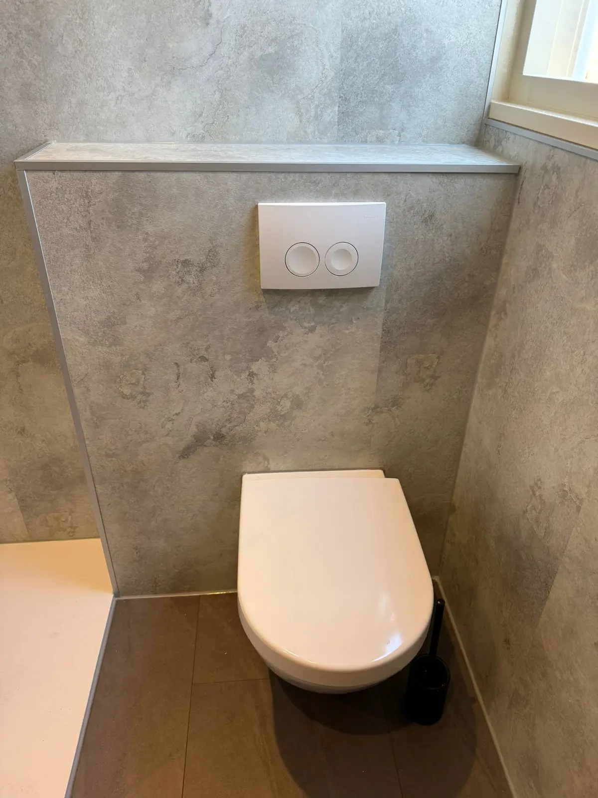 Nieuwe sanitairkit en voegmortel worden strak en waterdicht aangebracht.