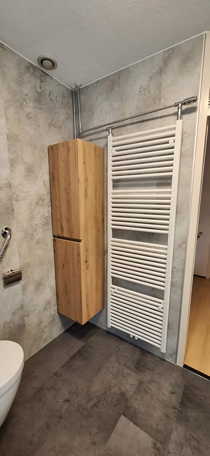 Ideaal voor momenten dat lang staan lastig is. Strak aan de wand ingeklapt wanneer niet nodig.